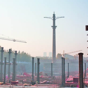 让“老济南”牵肠挂肚的跳伞塔现在怎么样了?今天(11月10日)从济南泉城公园全民健身中心项目部获悉,作为该工程的核心部分,跳伞塔的支护工程基本完成,建设单位下一步还将对跳伞塔进行美化、亮化,有着52年历史的跳伞塔将作为济南市标志性景观焕发第二春。 跳伞塔建于1956年,高60.95米,于1957年开始使用,上世纪90年代基本弃用,2007年跳伞塔被公布为济南市第三批文物保护单位。为迎接十一运,济南市决定以跳伞塔为中心,打造济南泉城公园全民健身中心。 10日上午,在原济南市体校的施工现场看到,跳伞塔支护工程已基本完工。“支护工程基本上完工了,现在的跳伞塔非常稳固!”项目部一位负责人眯着眼睛仰望着跳伞塔顶部,“这个塔有50多年的历史,国内现在仅存两座,很有保留价值,去年已经被列为市级文物了。” 这位负责人说,跳伞塔是济南泉城公园全民健身中心的核心,地面上以跳伞塔为中心半径15米范围内,不设建筑物,地面下建筑外墙距跳伞塔中心10米。整个工程是以跳伞塔为中心呈放射状分布,整体建筑在高度上以跳伞塔为视觉焦点,既体现了建筑场地的历史沿革,也彰显着从国防体育到竞技体育再到全民健身浪潮的转变。 由于要开挖地基,跳伞塔下面的地面被下挖了十多米,露出了原有的塔基,因此要对跳伞塔进行支护。跳伞塔支护工程在开挖以后随即开始,先在周围打下了108根钢管桩,又浇筑了7道腰梁,光是加固主体就有13米高,有了这个巨大的底座,跳伞塔就变得“固若金汤”了。 按照泉城公园全民健身中心设计方案,以场地东南角的跳伞塔为中心,构筑两条景观轴线:从西北角的顺河高架路至跳伞塔,再到泉城公园,打造一条由城市生活通往自然山水的景观轴线;从西侧的省体育中心到跳伞塔,再到运动场地,构筑一条由竞技体育到休闲体育的林阴大道。两条轴线在跳伞塔下会合,形成公众活动的中心绿地。