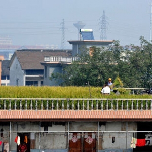 摘要: 2008年10月28日,浙江省绍兴县杨汛桥镇麒麟村彭秋根正和邻居在收割房顶上的水稻。 五年前,土生土长的农民彭秋根在造新房的时候,把屋顶进行了改造要在屋顶上种田,就将四楼屋顶设计成了一个120平方米长方 ...