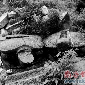 近日,广州连续发生两起古墓被盗掘事件。市文化局官网披露了这一惊人信息。两座被破坏的古墓分别为:市级文物保护单位陈天游墓和省级文物保护单位湛若水墓。有消息称,前者是因金沙洲地块已被拍卖而不得不异地迁移重建。但这一消息尚未经广州土地开发中心证实,该中心今日(5月25日)将作出回应。 白云陈天游墓:坟地迁移 广州市文物部门和市考古所有关人士介绍,根据有关部门批准同意,上月,位于白云区金沙洲的陈天游墓进行了考古挖掘,该墓地已迁到大坑山、其后人陈子壮衣冠冢旁。迁移原因是因“该墓位于武广铁路客运专线建设红线范围之内”。至于是谁对这处古墓蓄意破坏,文物部门表示不方便透露详情。 昨天实地走访,陈天游墓地面部分20余块石制建筑构件被丢弃在金沙洲浔峰岗大坑山,明显毁坏痕迹。市考古所有关人士透露,在考古发掘前,陈天游墓的地面部分已被迁移。墓穴部分被挖了一个小坑,还没有被盗掘,没有造成实质性的地下破坏。 古墓迁移事件扑朔迷离 这座于寂寂山林中安放了400多年的古墓,究竟是“挡”了谁的路,要迁移它处?“这事涉及的单位太多,事情比较复杂。”一名考古人员透露。在调查中也得到了不同的说法,整个事件显得扑朔迷离。 据市文化局官网表述,去年12月16日,市文化局在给武广铁路客运专线征地拆迁办公室一份复函中要求,在保护性迁移申请正式批准前,对方应停止一切可能对文物及其环境造成破坏、危及文物安全的活动。” 2009年4月1日,市文化局再次致函该办公室,称“同意异地迁移重建”,同时要求施工单位支付考古发掘经费约10万元。 时隔两天,市文化局发布通知称,广州连发两起市级文物保护单位陈天游墓和省级文物保护单位湛若水墓被蓄意破坏和盗掘的恶性案件。 从市文化局文件看,要求迁墓的是市武广铁路客运专线征地拆迁办公室。但市考古所及文物部门有关人士那又有其他说法:陈天游墓原址位于市土地开发中心拍卖的金沙洲一幅地块中。去年上半年,市土地开发中心曾向文物部门提出迁墓,未获同意。市考古所一名知情人士称,文物部门办理迁墓手续期间,市土地开发中心及陈氏后人已“迁移”了古墓的地上部分。 对于这一说法,陈氏后人则称,有关部门告诉他们,浔峰岗要建生态公园,坟墓一律要迁离。分散在各处的(陈氏)古墓集中在大坑山陈子壮墓旁重建,形成古墓群,成为生态公园景点。迁移重建费用由有关部门支付。 昨日联系广州土地开发中心,该单位表示相关地块工程都是按正规程序进行的,今天将具体回应此事。 现场探访 四百年古墓 湮没乱石中 冒雨探访陈天游墓,现场破坏情景十分不堪 昨天下午,冒雨探访陈天游墓,墓地多个地面构件被严重毁坏,散落在山林蔓草之间,情景十分不堪。 在地铁六号线浔峰岗站的一名施工工人带领下,进入“广州市轨道交通六号线浔峰岗停车场工程”工地。从工地右侧一条隧道上山不过200米,两根红色巨柱赫然倒在树丛中,旁边一面白色方形石碑就是“市文物保护单位”标志牌。 一片草木泥石间,约有20余块石制建筑构件横七竖八堆在一起。仔细辨认,其中有两只巨大石龟,其中一只头部已掉了一半;旁边的红砂石马只残余马身,马头不知所终;还有顶部呈椭圆形的石人,身倒地、头朝下。这些石制建筑构件,体形都相当巨大,其断痕明显是外力毁坏的结果。 距这堆乱石右侧约三米远处,有一处没有墓碑的墓地,这就是陈天游及其夫人迁移后的葬身之处。 有400年历史的陈天游墓现在只能通过沙贝村宋名贤陈大夫宗祠里陈列的一张老照片看到。金沙洲沙贝村一名不愿透露姓名陈氏后人表示,该墓长约20米、宽7米,石人、石马、石龟竖立,气势十分恢弘。 在宗祠左进天井的一面墙上,砌着从陈天游墓中挖出的9块浅黄色墓砖,上刻“大明谕葬京兆尹南海天游陈公墓砖”,还有4块黑色石碑,分别是墓碑以及陈天游及夫人伍氏的墓志。据陈氏后人说,陈天游去世后,还是皇帝下谕安葬的。这些墓砖和墓碑是族人从墓地进行考古挖掘时捡回来的,另有3面石碑是考古人员送来,暂放在宗祠里。 这名后人回忆,2009年清明后,考古人员开始对陈天游墓进行迁移性挖掘。在现场,他看到:棺材打开后,陈天游及其夫人的遗体用布包裹得非常严实。“遗体没有腐化的痕迹,夫人脸部的五官都能看到。”此外,墓中还出土了一些陶制陪葬品。这名后人说,隔了一晚,两具遗体就用新棺装好,迁移到一公里外的大坑山陈子壮衣冠冢旁。 市考古所有关人士透露,考古发掘前,陈天游墓的地面部分已经迁移。墓穴部分被挖了个小坑,未被盗掘,没有造成实质性的地下破坏。 无独有偶 增城湛若水墓:盗洞回填 增城市博物馆有关负责人介绍,2009年年初,有人报料称增城新塘湛若水墓发现盗洞。博物馆方面随即向省市文化部门反映,并向公安部门报案。目前盗洞已被回填。但究竟是谁对古墓下的毒手?案件仍在侦破中。 该负责人说,这处盗洞位置隐蔽,约1米多长、“能容纳一人”。据文物部门人员实地调查,目前尚未发现墓中有文物被盗或破坏。 湛若水墓命运多舛。据悉,约十年前,湛若水墓被炸药炸开,墓碑被炸成碎片,墓顶被掀掉一大块,墓中多件文物被盗。后有部分文物被追回,目前陈列于增城市博物馆中。 湛若水(1466-1560),增城新塘人,是明代著名哲学家、政治家、教育家。他与王阳明等