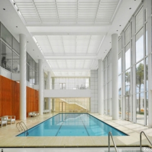 会所的几何形状遵循一个精确的焦点,从一水之隔的文娱乐中心看过去,看到的是从不同的“图层”的空间辐射,止于一个大半径曲线。在岛屿的南端,是通过户外小径以及花园连接的会所室内游泳池以及健身中心。 比邻的健身中心简单的几何线条在规模和形式上与会所形成了鲜明的对比,为会所富有动感的造型提供了平衡的作用,并活跃了两个结构的外部轮廓之间的对立感。 蜿蜒的路径穿过花园会所引发出强烈的中国山水画的理念。各种景观,纹理,鲜花和摆设为观赏周边美丽的水景和海港外面的娱乐中心提供了独到的观赏平臺。 该公司用金属面板采光的原理以及把对自然光线的掌握运用到整座建筑的设计上。全天候自然光线的转变使会所的内饰充满生气和活力,显示出深圳华侨城会所裡不同的空间及其波浪形的外表。 富戏剧性的平面和自然采光不但塑造了空间,并能辨别出时间的推移以及亮出了天空的风采。