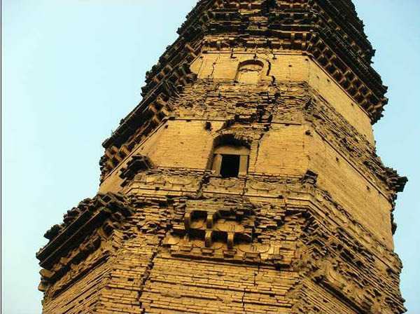 原建有太平兴国寺,塔属寺内禅师之墓塔,故又称“太平兴国寺舍利塔”,寺已不存。据《山西通志》载:塔建于宋嘉v八年(1063年)。又乾隆年间《安邑县志》载:“明嘉靖乙卯地震从顶裂至七层,宽尺许,至万历间地震复合”。从现存塔的形制看,为宋代风格。 塔为八角形楼阁式砖塔,原有十三层,高86米,现存十一层高约60米。塔内八边形空筒式,原有木楼板作为上下之隔层,惜已不存。平座与塔檐下均有砖雕斗沓型校斗砦迤套鞒鏊抄。塔体因多次地震裂缝较大,但塔身仍无倾斜。