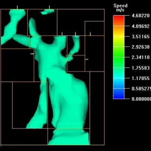 5问题 5.1 problem中的initial condition里边也有个速度设置。一开始计算的时候我就是在这个地方进行设置的,但是不行,计算结果不合理。后来改为设定门、窗处的速度,才有所改善。 那么这个initial condition里边的设置在我这个模型里的物理意义是什么? 5.2 由计算初始的设定可以知道,最大的风速应该是门、窗进口,然而计算结果显示是北边的窗口处速度最大,可以达到4.8m/s。怎么会有这种情况?是不是有哪些地方的设置不合理? 5.3 现在的设置中只是看到了空气在室内流动的情况,如果我想看外界风场对室内的影响,那么外界风场该怎样设定?模型需要重新建立吗? 6 一点收获 6.1 建模时搞清物理意义很重要。我一开始划分各个房间时,是用的block,结果可想而知。后来又仔细读了一些资料,才改成用partitions。 实际上这些东西资料里都写得很清楚,不过实在是看e文忒麻烦:) 6.2 opening只有建立在room的wall或者block上时才可以给定速度,建立在partitions上的opening是不能设置速度的。