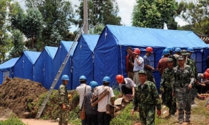 7月10日,云南省楚雄彝族自治州姚安县官屯乡官屯村刚搭建起来的帐篷。 |