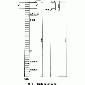 (五)设置垂直通道 为保障施工人员上下通行安全。在钢梁悬挂钢爬梯,爬梯上下两端必须固定牢固;高度不同的钢爬梯应错开布置,爬梯数量现场确定。每段爬梯应设置休息平台。为保障施工人员上下攀爬的安全,在爬梯外侧架设安全绳一道,施工人员佩带特殊安全带(带自锁装置),工人到位后,更换普通安全带,每个钢爬梯附近配备自锁器,以便周转使用。 钢爬梯示意图见图2、图3。