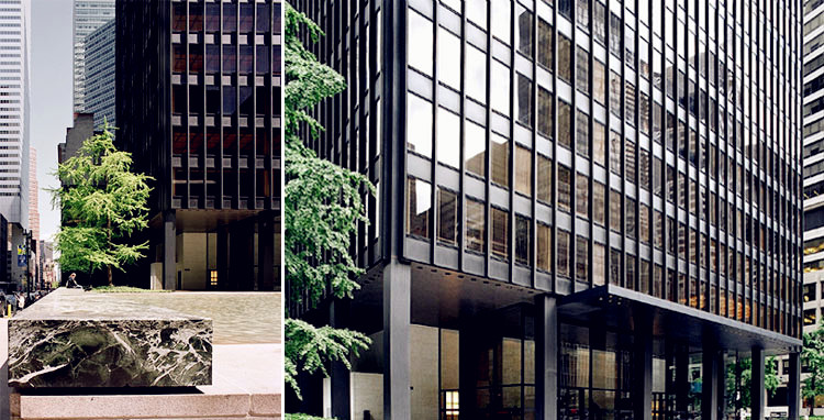 与前辈利华大厦不同的是,这是第一个“有头有尾”的玻璃摩天大楼,是密斯以三段式构图在高层建筑中的运用。考究的细部设计使得一贯不被美国人看好的玻璃摩天大楼显得如此的优雅,这得益于了密斯在新古典主义风格上的造诣,正是因为如此,使得玻璃摩天大楼在美国人眼中的地位大幅提高,于是各式各样的类似建筑如雨后春笋在美国兴建起来。