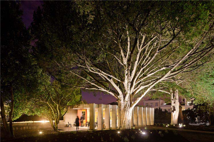 这一小型展廊位于波尔图大学,科学与技术创意产业园区内。修建好的展廊已经成为校园内非常活跃的活动聚集点。学生、老师、相关的产业合作商都会聚集于此讨论与各自密切相关的合作话题。在这个精致、小巧的地方,人们可以带上餐点享受自己的安静时光、可以和朋友来此谈天说地享受温暖的午后时光、可以进行会议等的各种活动安排。小小的展廊以包容的姿态迎接着到此的人们。展馆的外层采用了无封闭的、渗透式结构,看起来就如同一个常年无人问津的石头废墟。但走进展廊内,则是完全不同的一番天地:暖色调的外包木板墙面搭配红色的大门给人一种迎来送往的热烈姿态。夜幕降临,室内柔和的灯光透过开放式的外立面映衬着周围的自然景观,给以以恬淡安静之美。