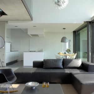 项目名称:饼干别墅 这座建筑坐落在法国里昂一个小村庄的陡峭斜坡上,面对开阔的景观。它的地理位置是一处从来没有房屋能够构建的斜坡边缘。 建设过程很困难,因为没有办法到达建筑工地较低部分,因此,有必要找到一种折中的办法,让他建立一个沿着自己的地形路径。建筑有两层组成,同时能够直接进入花园。房屋结构由钢筋混凝土构造。所有材料都是天然和未经处理的,均保持原状。混凝土用于天花板和地板,钢筋用于支柱和窗框,未经处理的外国木材被装饰在窗帘外部。 所有的房间都能接受阳光的照射,大型的落地窗使得日光能够完全到达地面。 木窗帘是房子的特性。第一个报道该房子的法国杂志根据外形将其命名为'饼干'。我发现的名称很是适当,于是决定保持。 木窗帘有几个功能: -有利于整合院中的景观,当地的房屋都是在石头上建造。 -它也有隔热的作用,特别是减少白天照进卧室的阳光。这是很重要的,因为这些客房正对东边而且有大型的落地窗。 -它能够将室内与外面隔离,创造一个镜面效果的窗帘和窗玻璃。 卧室在楼上。站在底层透过窗户可以随时随地欣赏外面美景。客厅的大窗户( 8分× 3米)打开通向花园,给人的感觉是,花园也是房屋的一部分;内部和外部有着连续性。房间内部也存在着连续性,比如壁炉和楼梯。壁炉作为区分客厅和音乐室的标志。它由钢铁和耐火的混凝土制成,是取暖的最佳选择。