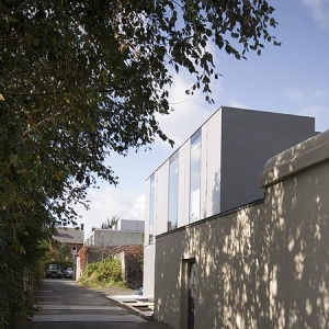 建筑师FLK已经完成了在爱尔兰首都都柏林居住要求的房子。该住宅包括两层堆叠。“这座房子是一个探索的空间,在一个基本层面上打造对角线形式和正交的可能性。”FLK 的Diarmaid Brophy说道。“空间组织和环绕公共领域的房子都是规定了具体的结构,”Brophy补充道。室内表面采用喷砂混凝土和木材。这所房子为五口之家设计,环境问题是首要问题。该项目地点的选择靠近学校,当地的商店,回收设施和工作单位,方便日常生活使用私家轿车或公共交通工具。 该项目建立一个与花园和,与家庭一楼房间连接。强有力的视觉和空间建立在厨房/饭厅地面连接,对于一楼照明也做了精心设计。此举利用了对角线关系,扩大视觉空间,房子的深度,广度和长度到达了极限。实行这一概念,还减少了公共客房,车库,实用房,儿童的卧室和浴室在一楼。横向转移部分,将整个儿童卧室增加了300毫米,日光轻松照进一楼餐厅和厨房。 这一转变提出了新的研究,改变厨房和更小的范围为私人领域,而不会增加总规模的建设。布局还建立一个独立客户卧室套房,以适应家庭情况的变化。花园有充足空间,以种植蔬菜和水果,而屋顶是观景的好去处。该住宅是在紧凑的城市范围建造的,与外部空间的关系不是建立在预期的外部,完美利用了对角的关系。