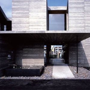 在设计期间,设计师调研了爱媛县不少各式各样的咖啡厅。但通常对于两层的咖啡馆,顾客会被服务生直接安排在一层坐下,只有当一层满员的时候才会使用咖啡馆的二层。这样,一层往往拥挤不堪,二层却少人问津。 咖啡馆基地隐藏在街区环境中,地面标高低于街道1米,怎样处理好这个棘手的问题是影响咖啡馆设计的关键因素。设计师不再专注于研究如何设计两层的建筑物,而是利用基地平面低于街道1 米这个现状条件, 选择了错层式设计, 一层位于地下1米处, 另一层与街道平面齐平。这种设计能适应各种不同的情况,方便服务员的操作。 建筑的横梁以一种有节奏韵律的方式顺势斜搭在两层平面上,由钢和混凝土柱子支撑,形成了一种空间和结构对话的格局。在建筑外部,斜面的梁板上铺满了鹅卵石以配合地面景观,和地面鹅卵石铺装融为一体。 这样,通过认真地协调梁和柱子的关系以及场地和建筑物之间的关系,设计师设计出了一栋合适的并且独一无二的建筑。 建筑的落地屋顶斜面消融了屋面和部分围合墙面的元素,削弱了建筑体量。为了满足室内的采光取景要求,咖啡馆就像一块三明治一样被切割挖掉几部分体块,然后用透明的整块玻璃围合,形成了小的外部平台庭院。 平台庭院中散植一两株小植物,平添了几分生机,也使室内的底层和一层的顾客同时有了与自然交流的物景。 视线上的通透性将原有的咖啡馆和现有的建筑物、附近的街景人群和室内的顾客不经意地联系在一起。 为了进一步符合咖啡厅特有的气质,设计师将通常的混凝土模板切掉9厘米,然后装排在一起操作,改变了混凝土墙面硬质冰冷的感觉,使其在一定程度上更加温馨、更加亲近迷人。 咖啡馆的室内设计同样以清水混凝土为主,水泥抹面的处理方式使得地面看起来细腻自然。同时配以哑光漆木的局部贴面和家具摆设,让顾客自然落座,享受咖啡馆内的温情。