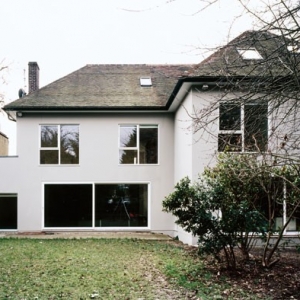 新建筑便是建筑在原来房子的地基上,但是在侧面以及背面都做了延长。建筑师将这样的尺度延伸到了两层楼中,并设计了一个全新的斜屋顶,这就为空间创造出一个居住loft。在第一层,建筑师特别植入了钢架以便创造出比例和谐的宽敞的公共空间,并与延伸的家庭单元相对应,包括娱乐和孩子们的学习空间,一个巨大的厨房,餐厅和起居室,向后花园开放的大型滑窗。楼下的中心位置同样还有祖父母的房间。