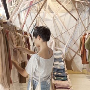 这个商店是为了澳大利亚的时尚品牌安斯多夫设计,临时商店只是开业三天,贯穿了154对拉伸的紧身裤造型在空间墙壁上。