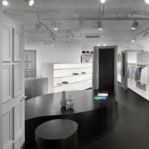 这家精品店是由日本设计师Nendo运用假门来设计的。额外的门转变顾客的视线,使得Indulgi衣服店不那么狭长,顾客要透过门才能看到所有的商品。