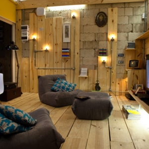 巴西建筑师YTA将房子的一个备用房间改建成一个数字图书馆,这图书馆里将墙壁上铺上了松木地板,也将灯安装在墙上。