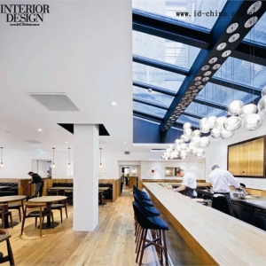 来源: www.id-china.com.cn 如恩设计研究室(Neri & Hu)日前完成了在伦敦的首个作品——Pollen Street Social 餐厅,餐厅坐落于伦敦名声显赫的梅菲尔(Mayfair)区。 “社交”一词指生命个体或群体间的相互作用,无论其本身是否意识到,或是这种互动属于主动或是被动(维基辞典)。如恩设计研究室对这一餐厅的设计理念在于深入探讨“社交”一词的涵义,蕴含人们互动时所激发的多元活力。有如引导社交对话,利用空间设计媒介用餐客人的相互交流,也与食物烹调艺术及用餐体验的连结。 建筑师将封闭的地下室以及地面上两幢不相邻的历史建筑物,由酒吧到主餐厅,或者由私人包厢到Atherton著名的甜点吧,串连出社交的互动空间与氛围。餐厅中的其他空间,如具展示功能的厨房, 服务区及备餐区的巧妙位置,与穿梭于其中的用餐客人互动,使得品尝美食佳肴饮酒欢乐有如一场舞台表演。 犹如任何一场对话的开始,应恰如其分的先表现出应有的社交礼仪,如恩设计研究室对餐厅的外观设计,展现出其对餐厅周遭历史建筑的尊重。以一系列漆黑的青铜金属框架的植入,来取得与现有结构比例相协调的效果。 重新定义了餐厅门槛轮廓,为餐厅刷上简洁、摩登的一笔,在与原有墙面完美拼接的同时,又延续了这些具有历史感外立面的存在感。 在外立面上, 镶嵌玻璃清晰与磨砂的结合确保了视线的通透感和延续性,恰似引导着一场餐厅食客们和街上行人的视觉互动。 餐厅一楼营造温馨的氛围,就像到了主厨的家,轻松的感觉像与一位老朋友的聊天。以现代及抽象手法重新解构英国古典细节,如木质壁板墙面及切斯特菲尔德式卡座或吧台重新设计的绿色玻璃“P”灯,如恩设计研究室保留了家的品味,但仍展现顶级餐厅的高雅。挑空天花设计引进大量的光线凸显了特殊用餐区,而群集吊灯光彩夺目,更是与餐盘中美食竞相吸引着客人的目光。 在饮酒和谈天之际,客人不经意的眼光透过刻意安排开口,观赏餐厅戏剧性活动。建筑师有意让食物准备的前场和后台交叉演出,例如厨房上菜区紧邻甜品吧后方,或备餐服务区位置在主餐厅正中心,不同空间的刻意交错并列,于是产生了活泼的场景。 好戏不断上场,伊比利火腿切割, 在盘中点缀酱汁,葡萄酒渗倒杯中,客人默默地偷窥着,但随咬下第一口食物的瞬间,舞台场景转换成客人们上场了,开始下一幕慢旋律的演出。 如惊喜的巧遇,在地下层发现风化了的砖头砌成的地板,与储藏着干肉和红酒的精致展示玻璃盒相并置。私人包房内,一组酒柜开形成了隔断,在确保了私密性的同时也为私人社交活动提供了开阔的视觉空间。长廊旁厨房墙面上开口吸引目光的是,刻意框下勾勒精湛手艺厨师们的双手。这个楼层的洗手间都是磨砂的玻璃外壳,有不同程度的透明度,允许朦胧的轮廓隐约可见,引发人们兴奋和大胆的情绪。而作为一个剧终高潮,独立的洗手间内厚实的木材,提供了一个暂时逃离喘不过气的社交句点。 如恩设计研究室以纯熟的技术,将建筑的元素融入一种社交的用餐体验,完全符合主厨 Atherton 的眼光,营造餐厅舒适且熟悉的氛围,却不时有意外的惊喜,不管客人与餐厅空间的对话如何演变, Pollen StreetSocial 将会是伦敦一个热门话题。