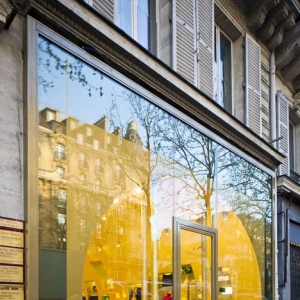 服装设计师Stella Cadente巴黎的这个店内部采用黄金色隧道作为内衬,是由法国建筑师Atelier du Pont设计,店内是圆柱形,在其弯曲的墙壁上展示衣服,而衣服的配件放长方形的凹槽内展示。