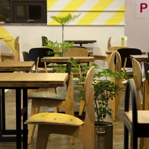 首尔Play Pot餐厅是Lim Tae Hee设计工作室设计的,采用篷布吊顶,并露出盆和调味品货架,这样设计的灵感来自街头食品摊。