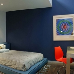 一直以来,事务所经手的项目都能很好地体现出顾客的身份,这个住宅也不例外。这栋住宅属于一位单身人士,房间内的装饰陈设都很符合单身住户的日常生活需求。两倍高的客厅兼餐厅是房子的中心,窗户宽敞明亮,成就了良好的室内光照情况。设计师保留了建材的自然色调,相互配合形成和谐的室内色彩搭配方案。楼梯上的巨幅画,专为这栋住宅定制的纯手工地毯和书架等细节非常突出。
