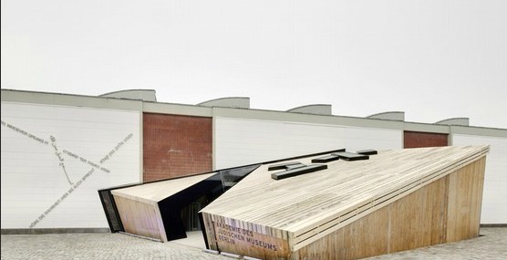 美国建筑师Daniel Libeskind继12年前设计了广受赞誉的犹太人博物馆之后,最近,又完成了犹太人博物馆的教育中心。这座教育中心就位于博物馆的街对面,原来这里是一个花市。在博物馆建成后这十多年中,不论是纸质资料还是电子文档数量几乎翻了一番,柏林犹太人博物馆教育中心建成后,原来的图书馆和档案馆就全部迁了过来。Libeskind设计了一个粗糙的木头盒子,在入口处打开了一个缺口,屋顶上互成角度的天窗和墙上狭长的开洞都像是在邀请参观者的到来。 大木盒子的内部还设计了两个小木盒子,分别容纳了图书馆和档案室的功能。这座2300平方米的中心的功能包括教育基地、演讲堂和会议室,每年将会有大约7000人在参观完对面的博物馆后来这里聚会。