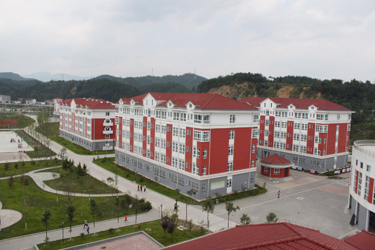 建筑采用四坡顶形式,其丰富的第五立面满足了山地地形不同高度的视点要求。坡屋顶檐口采用外挑天沟形式,防止坠瓦伤人。结合当地百姓喜好,外檐选择质感丰富的仿砖纹涂料,又可防止面砖坠落伤人。形成了富有亲和力的校园氛围。