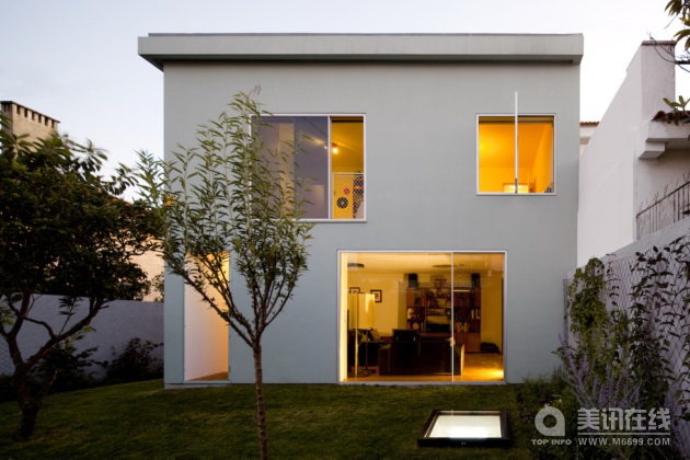 建筑设计:extrastudio 住宅位于里斯本的Alto da Ajuda,这里曾经是工人阶级的街区,建于二十世纪40年代。在设计过程中,设计师需要考虑到一个非常基础的问题――怎样不受原始房屋规划的影响,在这个有着诸多限制的地方建造起一个新的房屋?设计师将房屋设计成了一个单一的建筑形式,保留了斜面式的屋顶结构,并在原有的基础上对房屋进行了扩大,同时设计师也非常注重房屋的性能,以此来弥补房屋面积小的问题。 住宅分为三层,地下室,一层和二层,每一层都有各自的特征。一层是一个阁楼式结构,房间集中在二楼,倾斜的屋顶结构赋予了每个房间独特的空间结构。花园的地面上安装了一个带有电灯的水平窗户,它作为地下室的通风处,同时自然光线也可通过这个窗户照射进室内。百叶窗同墙体很好的结合在一起,厨房处装上隐形门。转自建筑中国网。 室内装璜使用了铝,混凝土和Riga木制地板,这些材料创造出了一种可触式的室内空间体验。 室外,建筑表面明亮的颜色同旧时的粗糙色彩相中和,呈现出了一种可变化的视觉感。花园在房屋开发过程中与房屋的关联性并不明显,但是它现在已经成为了房屋的一个基本部分。每年生植物,树木和灌木丛使建筑更加的完整,并给房屋带来了一丝奢华的色彩。