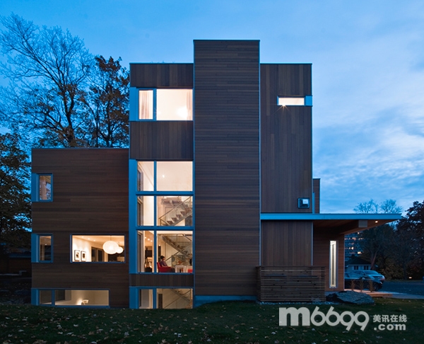 加拿大玻璃别墅由多伦多LineBox研究所设计师Andrew Reeves设计。这座颇具现代感的别墅置于森林环境中像个指路明灯一样。建筑师设计的面朝北面的玻璃幕墙,既满足了同时享受阳光和自然风光的要求,也考虑了对私密性的要求。在室内,家里的面积达540平方米,生活的空间感觉更宽阔,这要归功于延伸的玻璃墙。传统的保守与开放的建筑风格概念在一种垂直的空间里堆叠和交错。枫木地板的外观和触摸都很温暖,要归功于先进的地热系统。对阁楼的设计思路也上升了一个台阶。