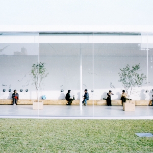 美术馆的圆形连续透明玻璃外壁,使内外产生了一种通透的感觉,让市民能更多地体验美术馆的空间同时也能感知外面的风景,这种建筑方式是一种全新的尝试。妹岛介绍,“馆内设有多个展览室,在每个展览室中间我们都做了空隙的处理,这和以往的美术馆设计是有很大区别的。首先,这样就可以让参观的人有更多的空间交流,与艺术近距离接触。其次,在隔断的材料上,我使用的全部是透明塑料板,所以还是可以看到一些内部的展览内容,而且这样也可以根据展览的需要拆分布局。”就建筑与城市结合,妹岛解释,“大家看这个建筑的时候,可以透过玻璃看到这个建筑的使用过程,其实这就是一个重新构筑的空间了,一个和城市联合的空间,美术馆前面低的建筑符合人的状态,能和人很好地融合;而后面高的部分又可以整体和城市结合。”