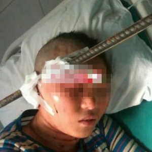 建筑工人坠落 被70厘米长钢筋刺穿头部建筑工人坠落 被70厘米长钢筋刺穿头部