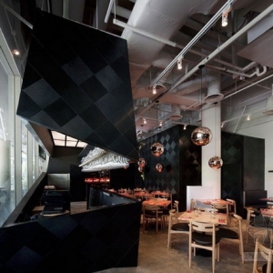 - 这是由许清平设计的位于上海的一家日本料理餐厅,材料均为自然环保,并且经过精细计算,不浪费分毫材质,灯光采用节能型灯具,低碳环保节能的概念充分考虑。天花的流线波浪设计充满动感,设计灵感来源于鱼的外形轮廓 ...