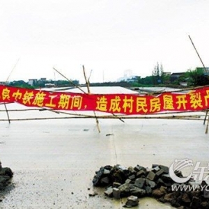 - 村民自制横幅阻拦施工 房屋开裂最大可塞进一个拳头 本报讯:道路施工致沿路318个村屋楼裂倾斜,经过一年半投诉上访无效之后,村民将自制横幅拉到施工路面上阻拦工程车进驻。杏坛镇国土部门17日回应,已 ...