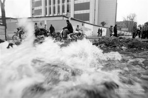 - 水管爆裂经七路变成“河流” 路人纷纷停住洗车