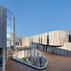来自PERIPHERIQUES Architectes:这是一个中心有大四边形天井,周身包裹金属竖条外表皮的生物科技企业孵化器。 建筑师给外表皮竖向条纹赋予了动感波动,局部区域还有明显变化,最终整个表皮拥有了俏皮而有机的风格 ......