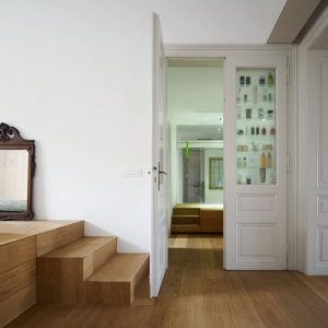 斯洛文尼亚建筑公司OFIS在卢布尔雅那设计了一所公寓,客房都交错层,而不是墙分隔,储存 区位于下方。...