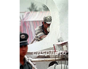 - 北京国际城市雕塑展将于九月开幕,北京市的参展作品目前正在紧张制作之中,多数作品即将完成,图为雕塑家在北京雕塑园中工作。